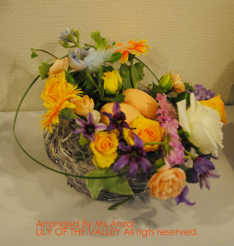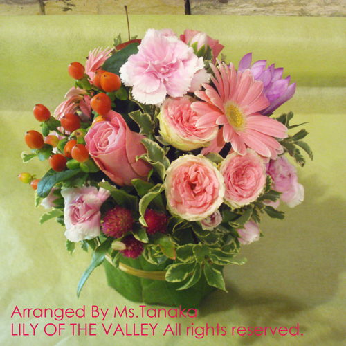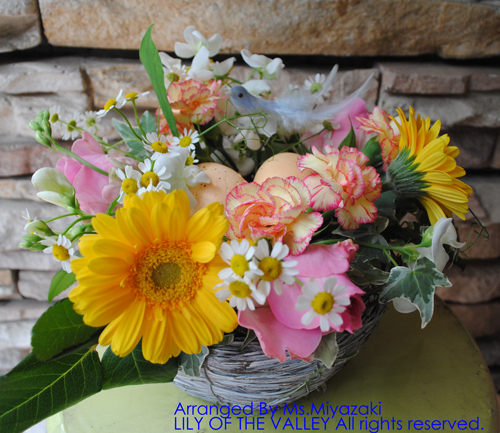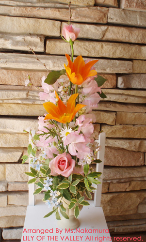 お花を生ける上で重要な季節感を養うために、カーネーションばかり使用するということはありません。自由にデザインする楽しさと、しっかりとしたお花を生ける力をつけるリリーオブザバレー独自のカリキュラムです。