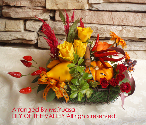 ◆10月は「ハロウィンアレンジ」 オモチャカボチャを使ったキュートなアレンジを制作します。 高低差を付けた自然的なお花の挿し方を学んでいただきます。