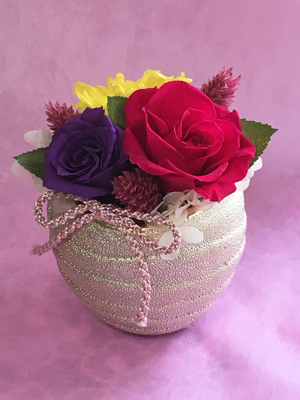 ご結婚式用にプリザーブドフラワーのラウンドブーケをご制作