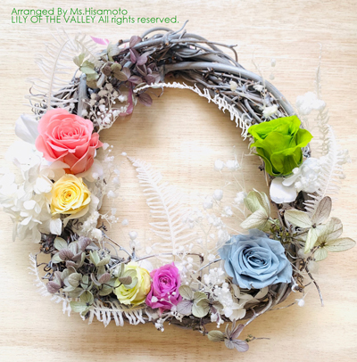 4月のテーマ カスミソウ・オーバータイムを使ったリースを製作します。