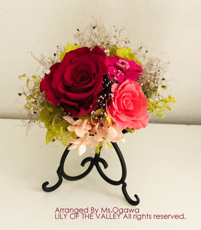 プリザーブド選択では、大輪のアモローサを使ったアレンジを製作します。