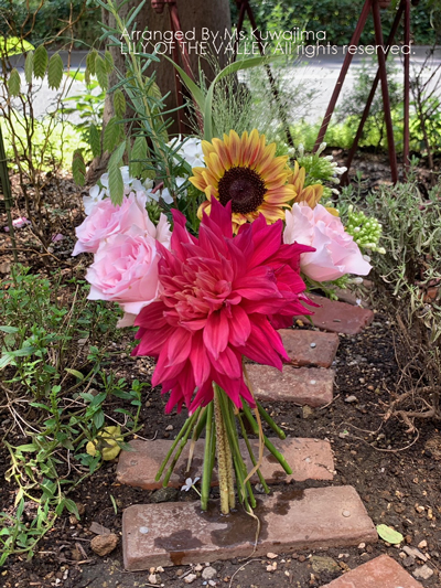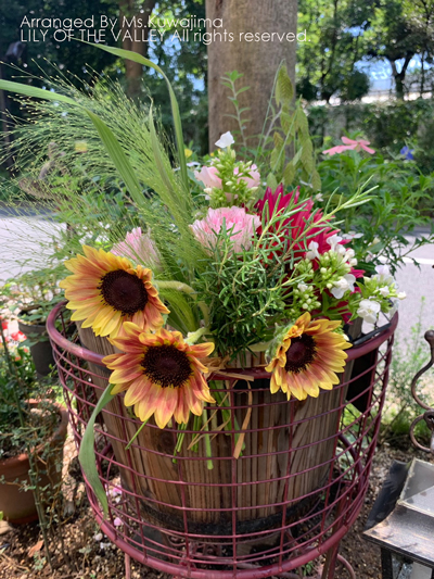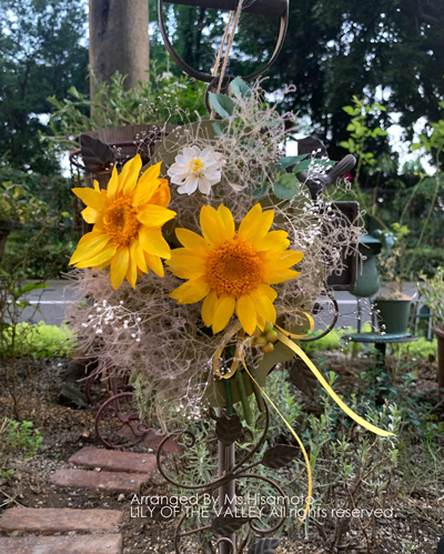 花材を2分割してご制作。ひとつはプレゼント用とのことでした。