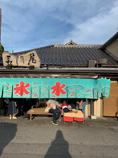 長門屋さんの外観。昭和感たっぷり。ほっとするお店。暑かったせいか、ドアは全て全開で換気良好。